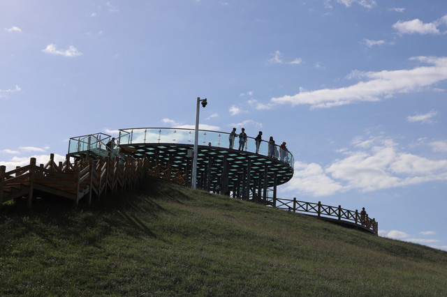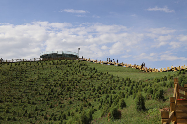 卓尔山是祁连山的一条支脉,呈现丘陵状的草原风光,属于丹霞地貌,赤红的砂岩和碧绿的草原层叠交错,非常漂亮。卓尔山在海北祁连县东北侧,八宝河北岸,与藏区神山阿咪东索(牛心山)隔河相望。海北是山东援建的地区,卓尔山对山东人民免费,只要每人购买20元电瓶车票即可。