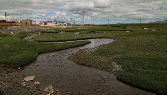 这是倒淌河,天下河水往东流,偏有此河向西淌。倒淌河在日月山西边脚下,一股碧流无休止的向西而去,流入浩瀚的青海湖。藏族同胞说:这是公主的眼泪淌成的,公主思念故乡伤心落泪,泪水形成一条河,往西而流,引导着公主西行。