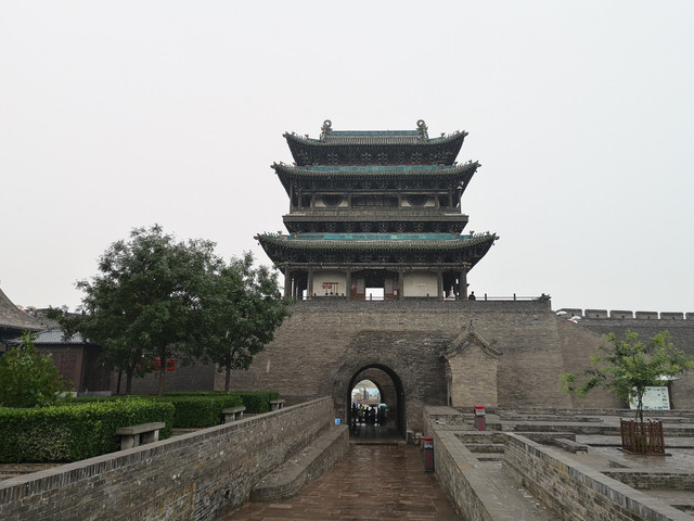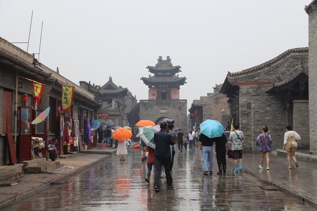 7.4第二天 雨中逛平遥。我们到达的当天古城管委会下发的通知。下载山西本地游的APP从4号开始可以免费进古城。进去后有电瓶车可以乘坐,司机还兼做导游。下雨人少我们在城里拦了一辆空车花了一百元。