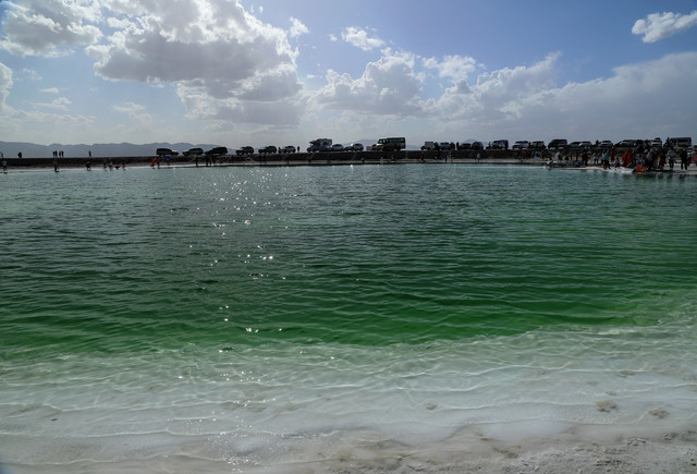最后我们回到大柴旦到了翡翠湖,现在还不收门票,但是设施已经建设好了。翡翠湖真的像是散落人间的翡翠,令人流连忘返。