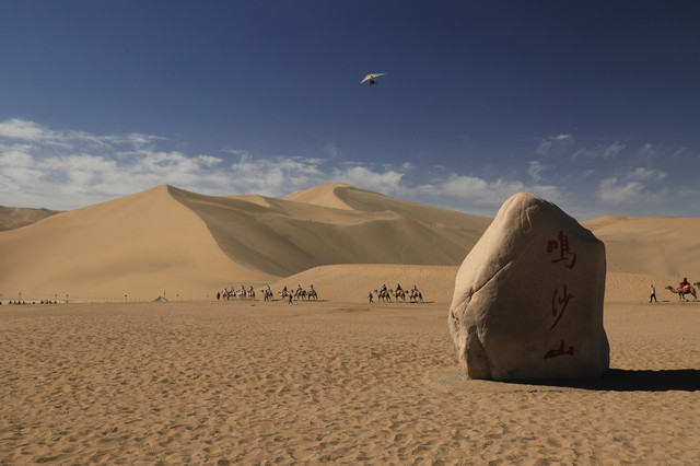 到上午十点多就已经很晒了,回酒店吃个午饭休息一下。工作人员说到下午6点左右落日,下午4点多再来,骑个骆驼,拍拍落日。鸣沙山的门票两天的有效期。