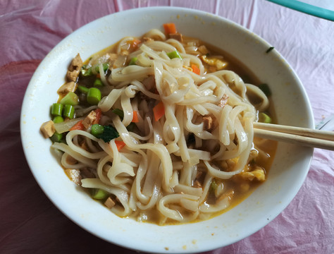 等候十余分钟,臊子面上桌。