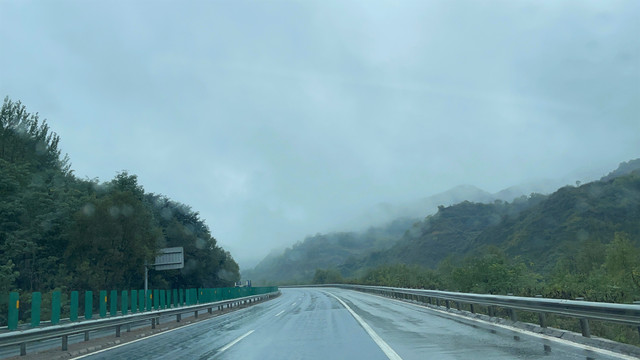 午餐后抓紧行路,蒙蒙细雨一直在下,路面有些湿滑。行驶在高速路上,需小心翼翼,幸亏路上大车不多。