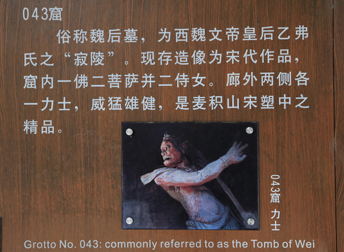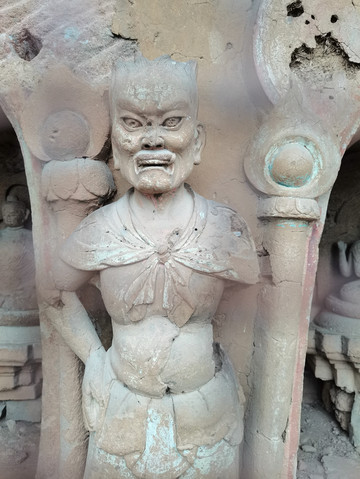 043窟,力士造像,现存造像为宋代作品,也是麦积山宋塑中的精品。