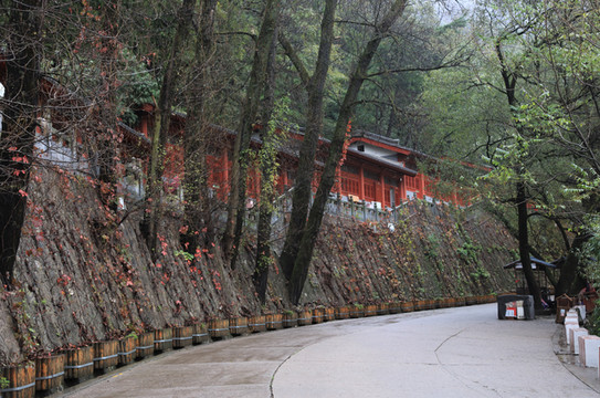 此处林木稍显稀疏,是一处远观石窟的好位置,但见洞窟绝壁开凿、栈道凌空飞架。