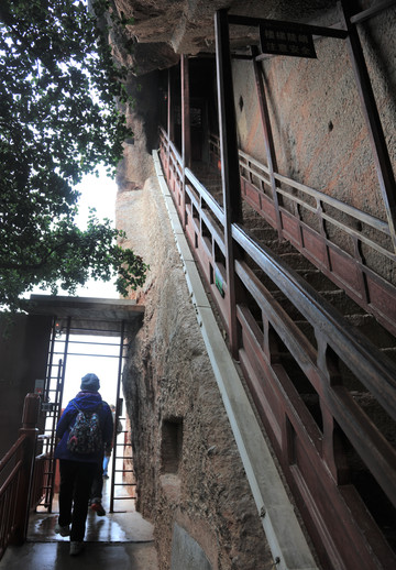 从石窟最底层走过,又是一段上行的台阶路。