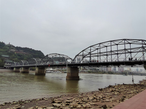 黄河中山铁桥,1909年建成通车,兰州市的标志性建筑之一。