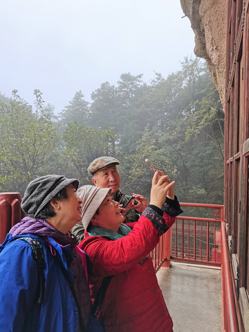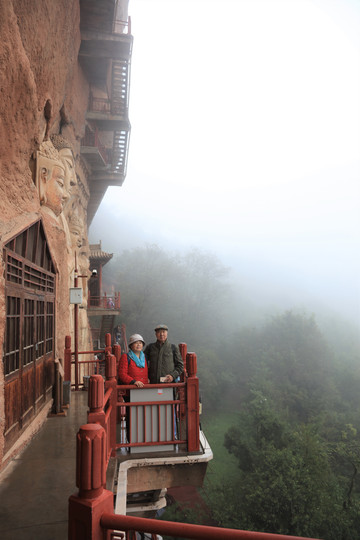 一段文字写出了我们此刻的心境:“秋季多雨,如果你来麦积山的那天烟雨蒙蒙,不要心情低落,应该感到庆幸,因为时机恰好,此刻才可能观看到秦州八景之首的“麦积烟雨”,天空云遮雾绕,山景蓊郁阴晦,常让众多旅客流连忘返。 ”