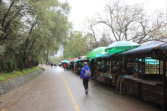 已是中午,景区里有几家当地小吃摊位,看着都不甚中意。记得来时经过很长的农家乐一条街,到那里找点饭食应该不难。