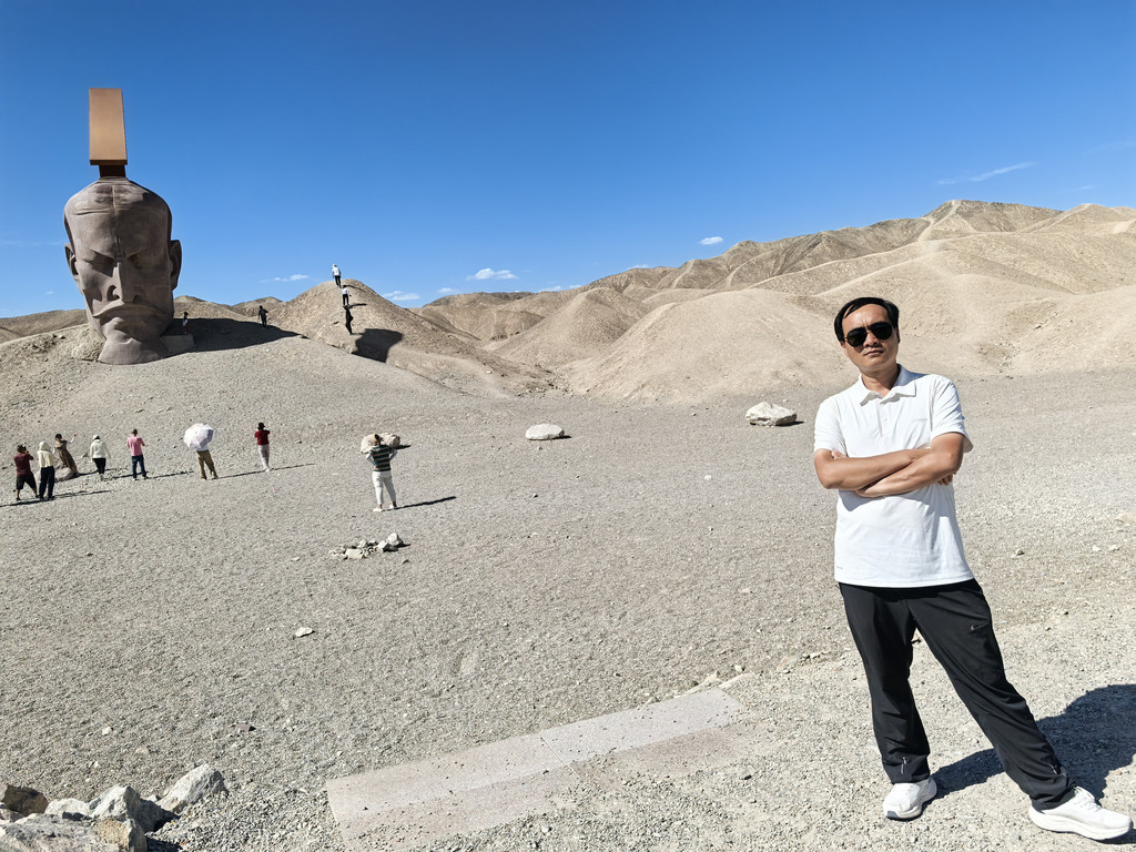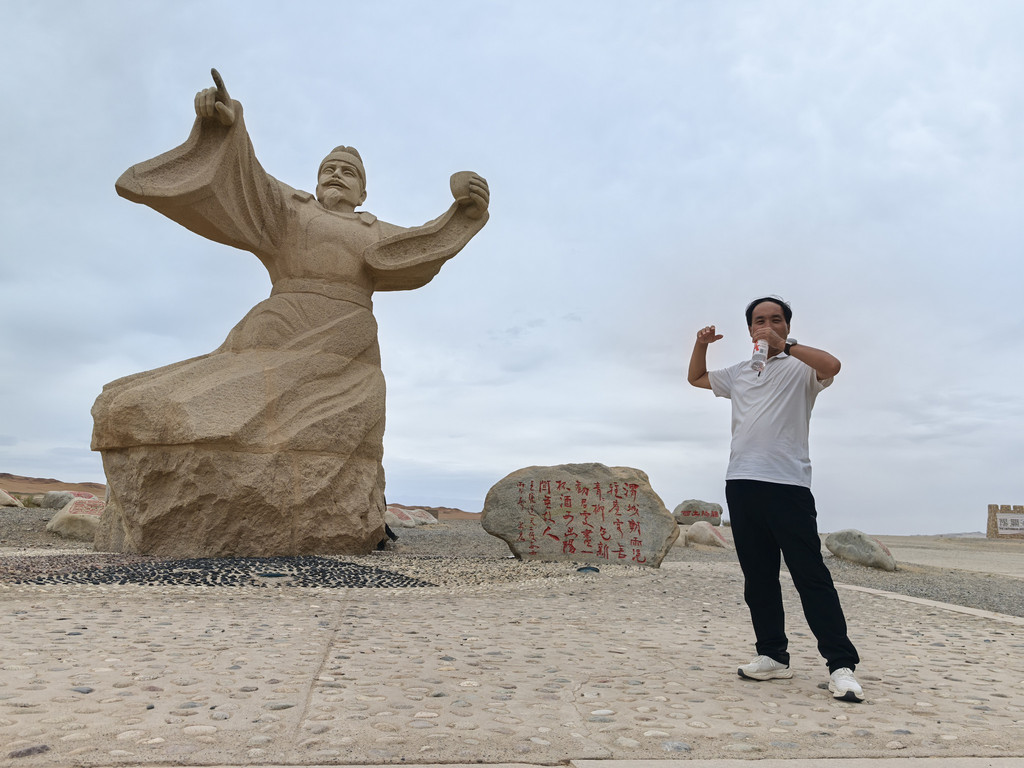 嘉峪关的确雄伟,但在去敦煌的路上,我和老婆不约而同的感慨:敦煌被建到了关外!河西走廊,看汉唐历史,让人热血沸腾,但嘉峪关却是明朝战略收缩的一个例证!在返回的摆渡车上,遇到一位新疆大妈,兵二代,豪爽健谈,她发出了和我相同的感慨:我们新疆人最感谢的就是左宗棠!是啊,河西走廊留下了太多左宗棠的印迹。上连霍高速,在瓜州下,走207县道去“大地之子”雕塑,这是个很有名的打卡点,这是一个婴儿的巨幅雕塑,撅屁股趴在沙地上,很壮观,我认为拍照适合远拍或者俯拍,真搞不懂,那么多人站在婴儿的鼻子,嘴旁边拍个啥。其实在下高速来这里的路上,雕塑不只这一处,还有在建的,说这是一条古丝绸之路,雕塑都是契合这一主题的,如汉武大帝。