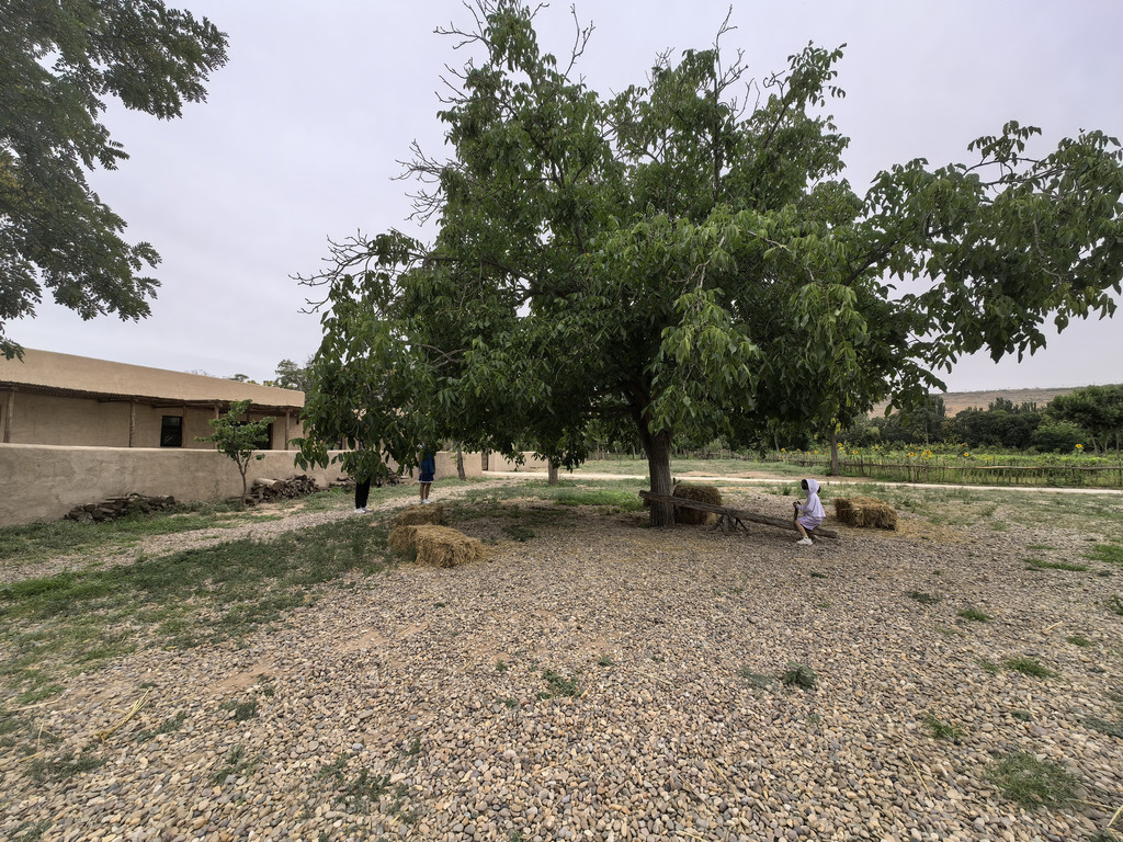 北滩村很贫穷,好像也只剩下一些老人了,破旧的农村建筑,当时就觉得很适合拍上世纪农村题材影视剧,事实上他和旁边的上滩村也确实是电视剧《山海情》的取景地。返回时看着地图离黄河宿集(被称为中国版摩洛哥)很近,但路并不好走,还绕来绕去,有一段很窄,无法会车。黄河宿集是个别墅酒店群,傍黄河,看沙坡头,别墅外观看似土墙,外面沙地点缀有农作物及农家器具,城市文艺青年或许对此感兴趣,我和爱人出生在农村,对此无感。停车点距离宿集七八百米,如果住酒店,有电瓶车来接送,酒店费用1000元起。这一路就是绕着沙坡头转,沙坡头是中卫最好玩的,最值得去的,但去玩过了,所以下午我们去了通湖草原。通湖草原距中卫20公里,但却到了内蒙古阿拉善,中间还有个检查站,有警察查证。通湖草原是个沙漠绿洲,湖不大,几个人造的水泥蒙古包并不好玩,再坐电瓶车到里面的沙漠,挺好玩儿,比沙坡头小,但游客相对较少,玩沙无限制,随便跑,踩,还有个山寨“月牙泉”。由于还要去敦煌,所以没有玩什么收费的体验项目,但这是此次行程第一次进入沙漠,我和孩子们玩得还是很尽兴的。