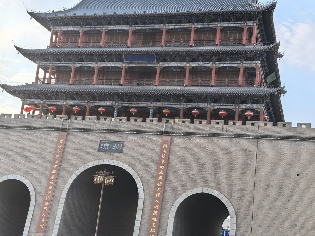 DAY 5:7月15号原计划一早出发去武威,途经天祝县华藏寺,乌鞘岭,天梯山石窟,白塔寺,晚上入住武威金武国际大酒店。全程318公里,高德预计时长5小时。兰州的南,北滨河路是快速路,一般不堵的,和颐酒店离南滨河路很近,但需要调头拐过去,车多,只好顺着往背南开找机会调头,没找到机会,顺着拐到了瓜州路,这是条三车道的单行线,不到一公里的路程硬堵了1个小时,害得我两个小时了才出兰州,耽误了行程,天梯山石窟和白塔寺只好留待明天了。拐到南滨河路上路过黄河楼,上到三楼平台看了下黄河,再上楼是要买票了,据说夜景好看,还有演出。从兰州走京藏高速,连霍高速,在天祝县下,华藏寺维修不能进,找地方吃饭却意外发现了个宝藏:天祝特色白牦牛肉汤。新店开业,价格超实惠,关键是好吃,牛肉汤,牛棒骨,牛腱肉,都好吃。和老板聊,老板兼大厨是郑州人,在郑州,洛阳都开过店(难怪店里还有烩面),用的就是洛阳牛肉汤的做法和牦牛的天然的鲜,另外,由于藏民不吃牛下水,所以他做的牛肚,肝,舌之类的,成本低,便宜还好吃,强烈推荐!从天祝县出发可以走312国道,也可走高速(然后在安门收费站出),接着走202县道翻越乌鞘岭,路很好走,风景也好,建议不走高速。乌鞘岭爬到最高处海拔3120米,是河西走廊的东起点,也是青藏高原,黄土高原,蒙古高原的交汇处,风景好,很出片。由于没有时间再去天梯山石窟和白塔寺了,就从古浪北上高速直奔武威了。武威,古称凉州,现在城区也就叫凉州区。金武国际大酒店也算是新店吧,豪华,不贵,停车方便。晚上品尝了有名的武威三套车:行面,卤肉,茶。三套车出名是因为其历史,相传左宗棠……,但就味道而言,行面类似烩面,只是没有汤,改成了浇卤,个人觉得没有我家烩面好吃,卤肉只是咸,老婆认为其没有跟上时代进行改进,喝个茶解暑挺好(有茶叶,红枣,冰糖等),三套车22元一份。另外,今天收到了新换的无人机。