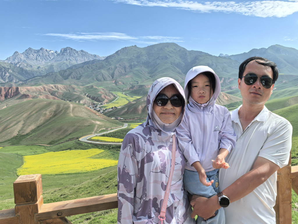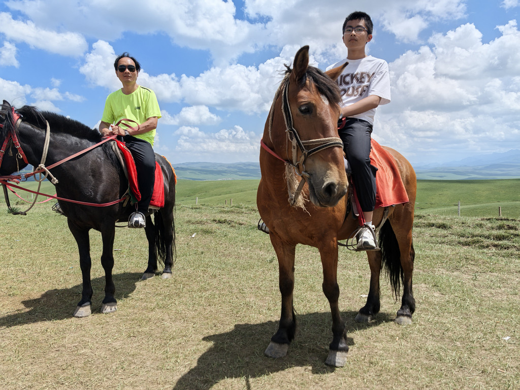 DAY 15:7月25号,今天的行程规划是,翻越橡皮山到青海湖,沿环湖西路途经倒淌河镇上高速到西宁,全程720公里,高德预计8小时37分。导航时设置“黑马河镇”或者“橡皮山垭口”为途经点,否则就全程高速去西宁了。下茶德高速即到茶卡盐湖,虽然名气很大,但一是因为时间紧,二是因为这一路见了好几个盐湖了,所以就没有停车,直接开始翻越橡皮山。橡皮山的景色很好,橡皮山垭口海拔3817米,是这趟旅行海拔最高的地方。到达垭口,停下来看风景,一个很像年轻版景岗山的藏族小伙牵马过来,150元,可以在这草地上自由驰骋,甚至可以骑上远处的山顶,他可以教我们,只要后面不再有游客要骑,我们不限时间。由于在山丹军马场没人教我们,让马一路小跑,体验了一个多小时的骑马最颠状态,这次刚好有机会弥补我们的不甘,我和儿子就又骑起马来,老婆女儿在草原上打地鼠,有很多地鼠。不过这次仍然没有骑太长时间,马比山丹的烈,“景岗山”教我们,脚蹬直,屁股半离马鞍,身体前倾,让自己和马同频,还鼓励我们别怕,下面是湿湿的草地,即使摔下去也不疼!理论知道了,但一跑起来就紧张,想勒缰绳“刹车”,上坡还好,但马很想下坡,还要费劲拽缰绳让马转向,所以我们只骑了半个多小时就“累”下马了!不过是个难得的,疯狂的体验!沿环湖西路赏青海湖美景,车很多,有网,无法下路去湖边,车停路边小站,让无人机过去飞了一圈。驶出环湖西路,离开青海湖不久,途经倒淌河镇,日月山景区门口,这里是青海进藏的必经之地,也是当年文成公主进藏时松赞干布即在此迎接,河水倒流的奇异现象也使得这里增添了许多传说。驶过倒淌河镇便上京藏高速,直奔西宁。