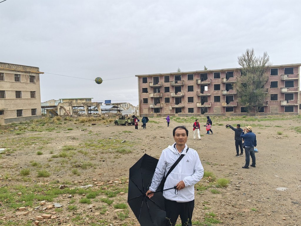 DAY 13:7月23号,今天的行程规划是,途经阿克塞博罗转井影视基地,黑独山,茫崖翡翠湖,夜宿茫崖,全程505公里,高德预计8小时。我原计划是途经阿克塞博罗转井影视基地,黑独山,西台吉乃尔湖,水上雅丹,东台吉乃尔湖,夜宿大柴旦,全程587公里,高德预计10小时,这样就节省了一天的时间。这一路没有城市落脚,必须开到大柴旦,几乎没有高速,路窄,双向单车道,没有应急道,两边是荒漠或丹霞地貌,大车多,中间从316省道须经过九公里长的“火星一号公路”才能拐向315国道,单说开车时间就需要十小时,我一个人开车是个不小的挑战,“火星一号公路”高德提示蓝色,又窄又颠,我和儿子倒是对此公路颇感兴趣,老婆坚决反对!安全第一,我们放弃了。选择去游玩茫崖翡翠湖纯粹是因为我们需要找个住宿的城市,否则就只能住冷湖镇或者去水上丹霞路上的板房酒店,住宿条件差还要近千元。但当我们去到茫崖翡翠湖后看到了让我们震惊的景色,这是我们这一路发现的最大宝藏!代价是,我们需要从316省道从老茫崖收费站上西和高速向西北方向的茫崖开,第二天再原路返回,这一折返多了180公里的路程。阿克塞博罗转井影视基地实际上是一个废弃的石油小镇,80年代的小香港,随着1995年阿克塞县政府迁出博罗转井,这里就此被废弃了。小镇功能齐全,礼堂,医院,幼儿园,迪厅等各类上世纪七八十年代的建筑,可以想象它曾经的繁华。如今早已无人居住,但却是一个顶好的天然影视基地,儿子对此不感兴趣,但因为我是个影迷,《九层妖塔》《西风烈》的场景给我留下了深刻的印象,老早就想探访这里了!现在门票30元,有电瓶车,另购票,但不需要,全部转一圈三公里,在里面步行,感受那个荒凉,那个末日景象,寻找电影中熟悉的场景才更有意思。