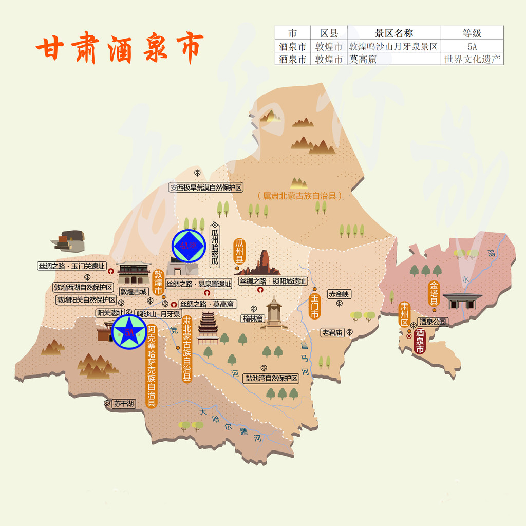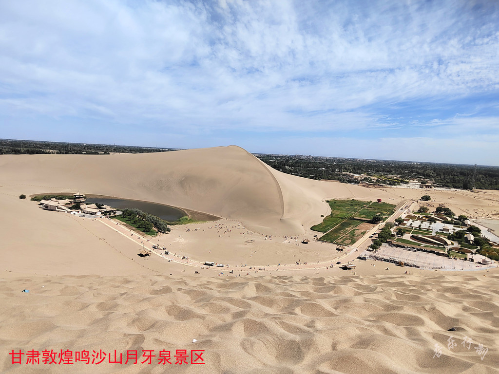 鸣沙山月牙泉风景名胜区,位于敦煌城南五公里,沙泉共处,妙造天成,古往今来以“沙漠奇观”著称于世。