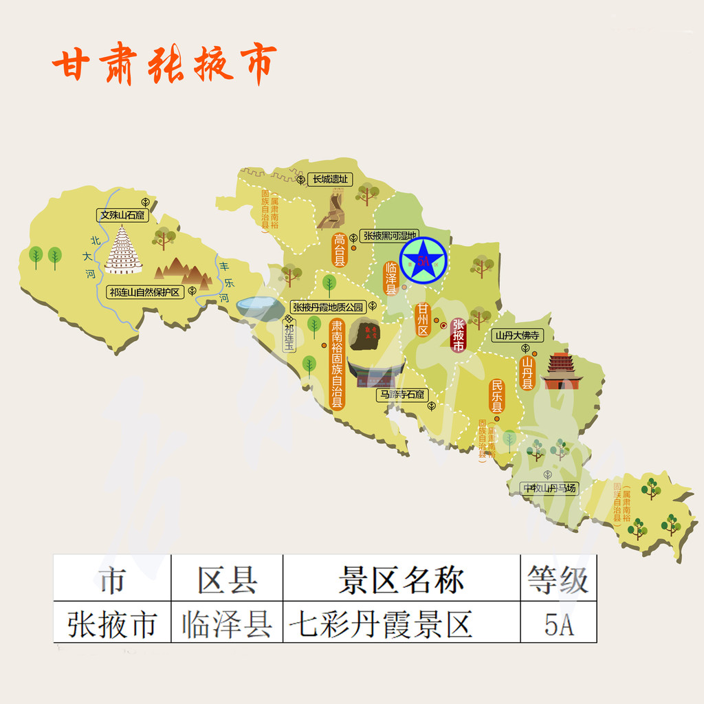 张掖市七彩丹霞景区是中国北方干旱地区发育最典型的丹霞地貌,是中国国内唯一的丹霞地貌与彩色丘陵景观高度复合区。