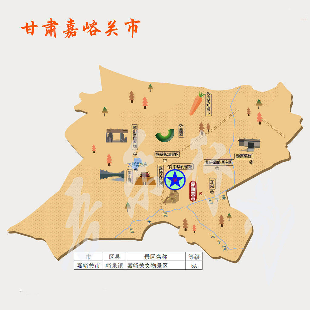 嘉峪关文物景区包含嘉峪关关城、九眼泉湖、黑山石雕群、悬壁长城、长城第一墩等景区,嘉峪关文物景区是依托嘉峪关军事防御体系的历史遗存、遗址为主要景观资源的边塞文化、长城文化、丝路文化旅游景区。