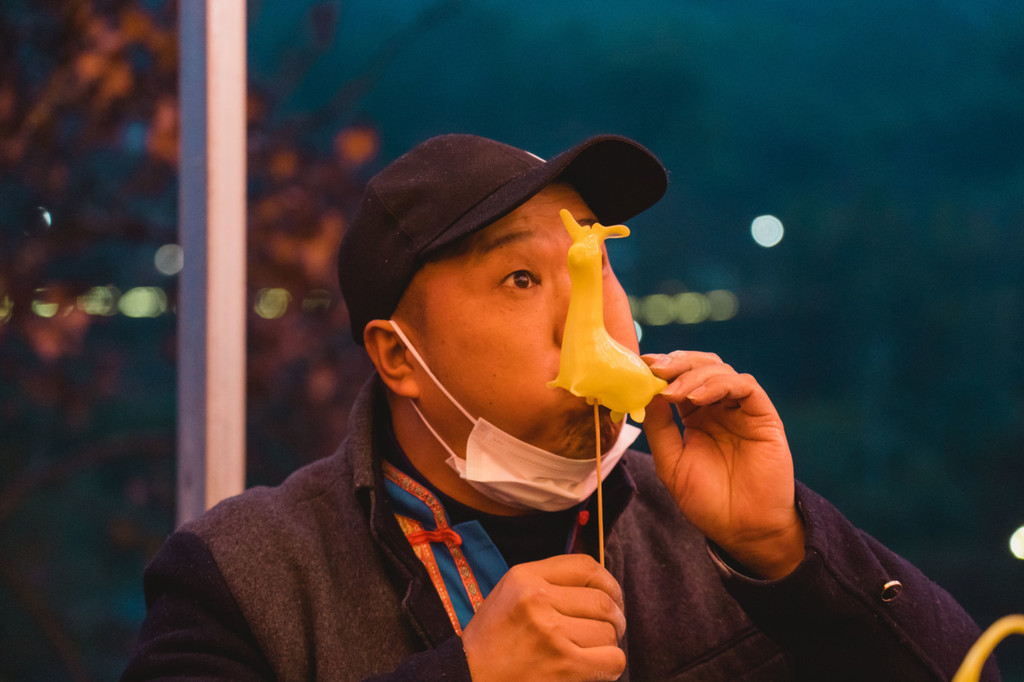 虽然还未到真正的新年,这里已然是一副过年的景象。在这里,你可以看到小时候看到的大部分小吃,表演。包括“烤棉花糖”、用最原始的方式制作“爆米花”、用“糖浆”作出各式各样的动物图案等等。