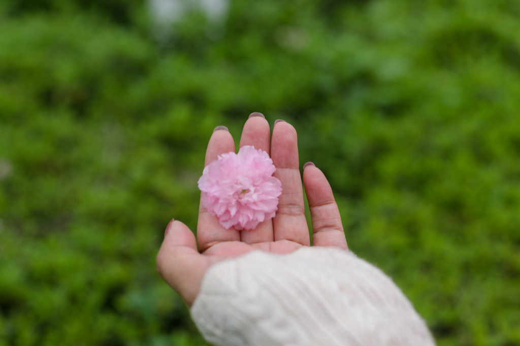 掉落在地上的樱花,捡起来也同样的美美哒。