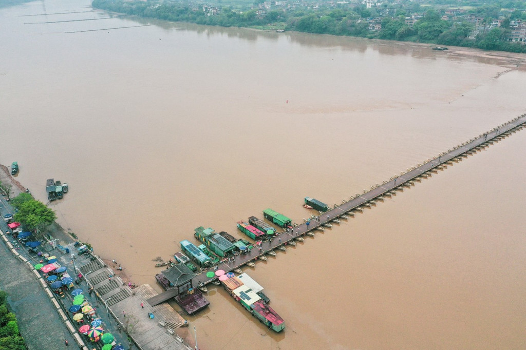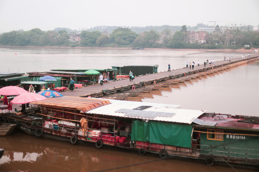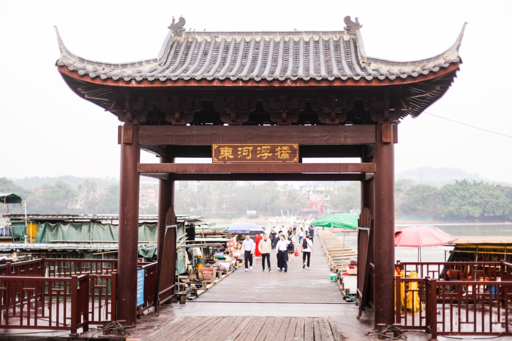 在城墙上,能看到赣江上那千年来一直连通两岸的浮桥,这里的浮桥用了船只浮江再在上面铺设木板,方便通行,充满了古代工匠的巧思。