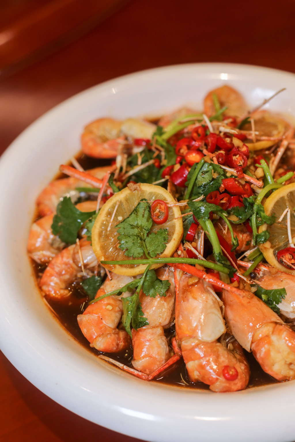 罗氏虾煮熟后加入酱汁泡制,酱汁加入了酱油、柠檬汁、辣椒等材料,层次非常丰富,冰凉的口感也很适合夏季食用。