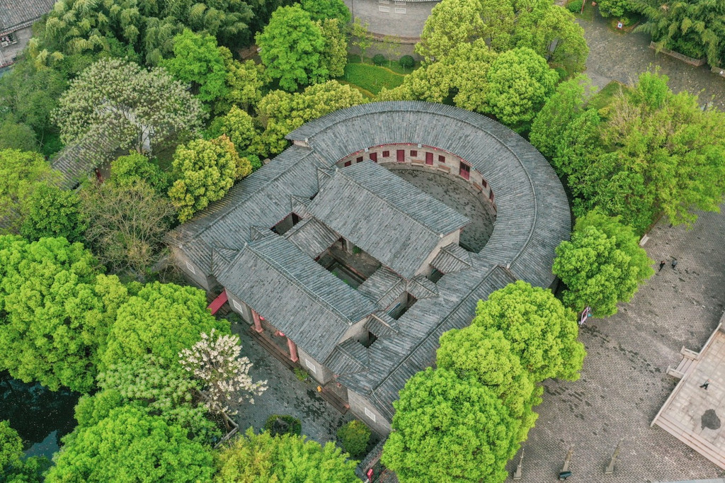 这里的建筑都是按照客家人的传统建筑建造,客家围屋等建筑都能在这里看到。灰色的建筑有着独属于客家人的历史厚重感,在一砖一瓦中,镌刻了时光的味道。