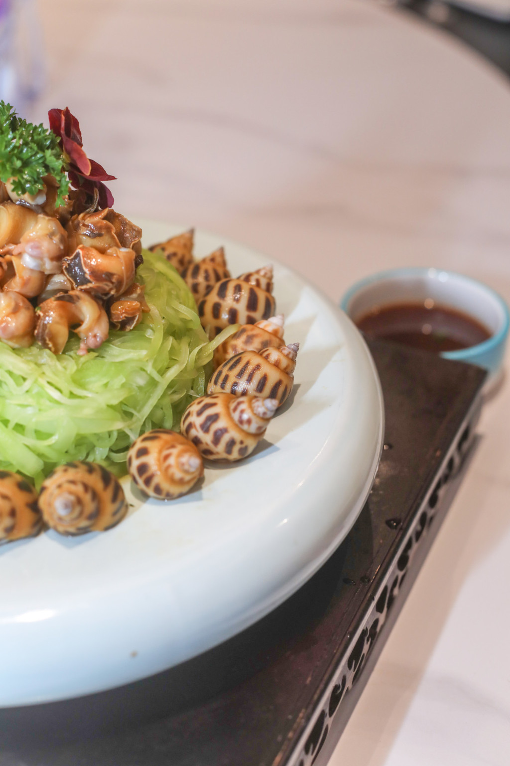花螺已经剥出螺肉,然后加入芥末烹饪。芥末的味道正好,香而不呛,更提升螺肉的鲜甜。