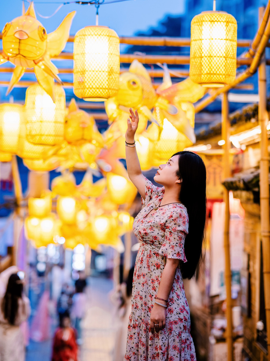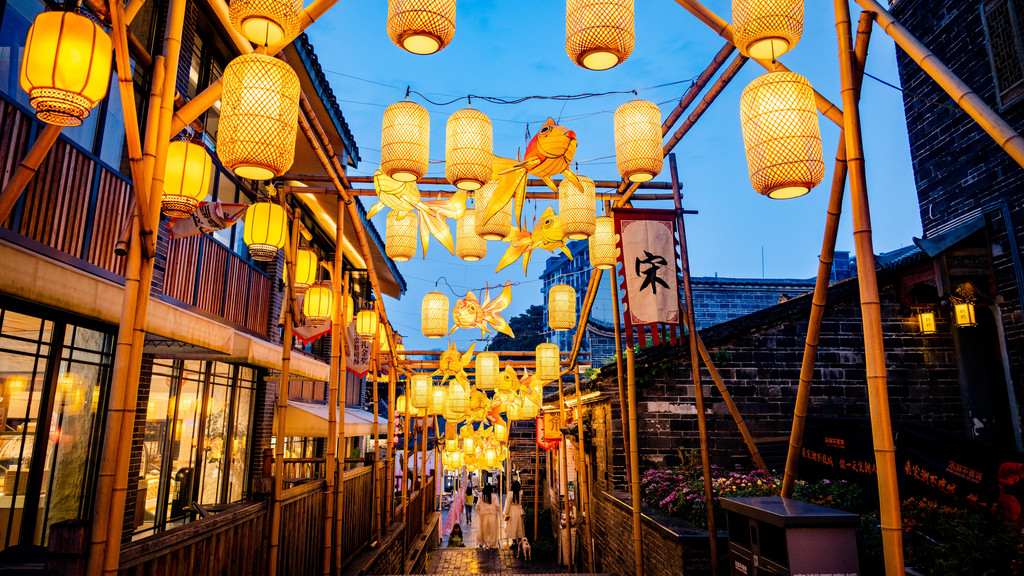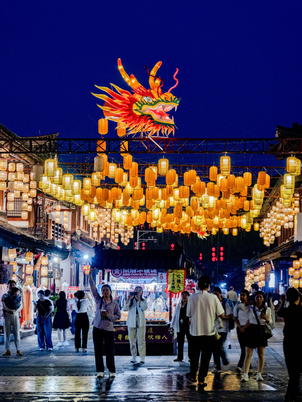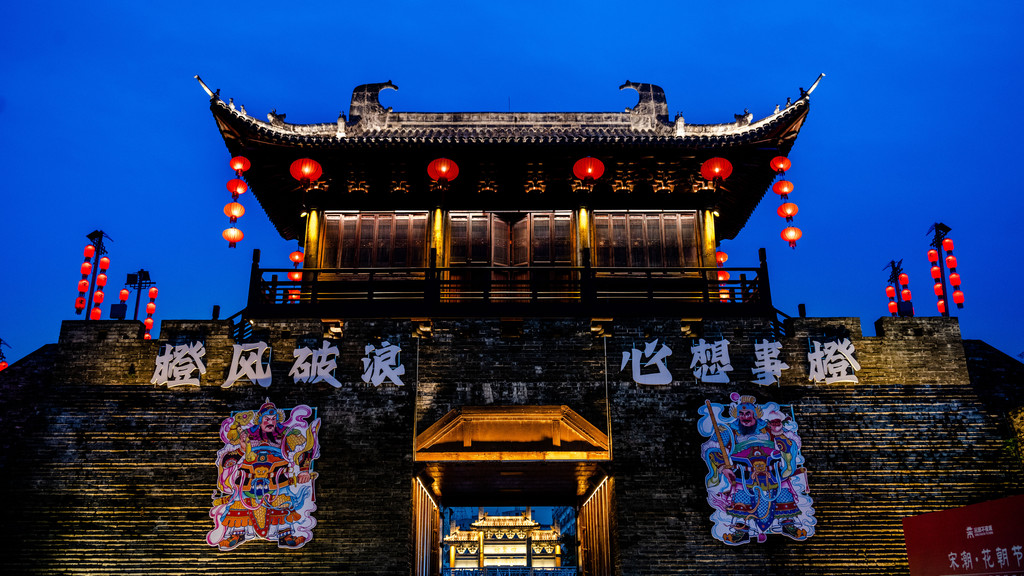 当夜幕降临,华灯初上,老城区的古建筑在灯光的映照下,散发出迷人的光彩。那些热闹非凡的店铺、古色古香的茶馆和食肆,万家灯火璀璨夺目,犹如繁星点点,将整个宋城装点得如诗如画。
