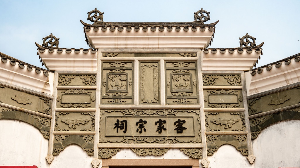客家文化城内的客家宗祠外观采用青砖灰瓦,风火墙高峻突兀,给人一种古朴而庄重的感觉。同时,宗祠内部的空间布局也十分合理,分为前庭、中堂和后殿等部分,每个部分都有其独特的功能和意义。