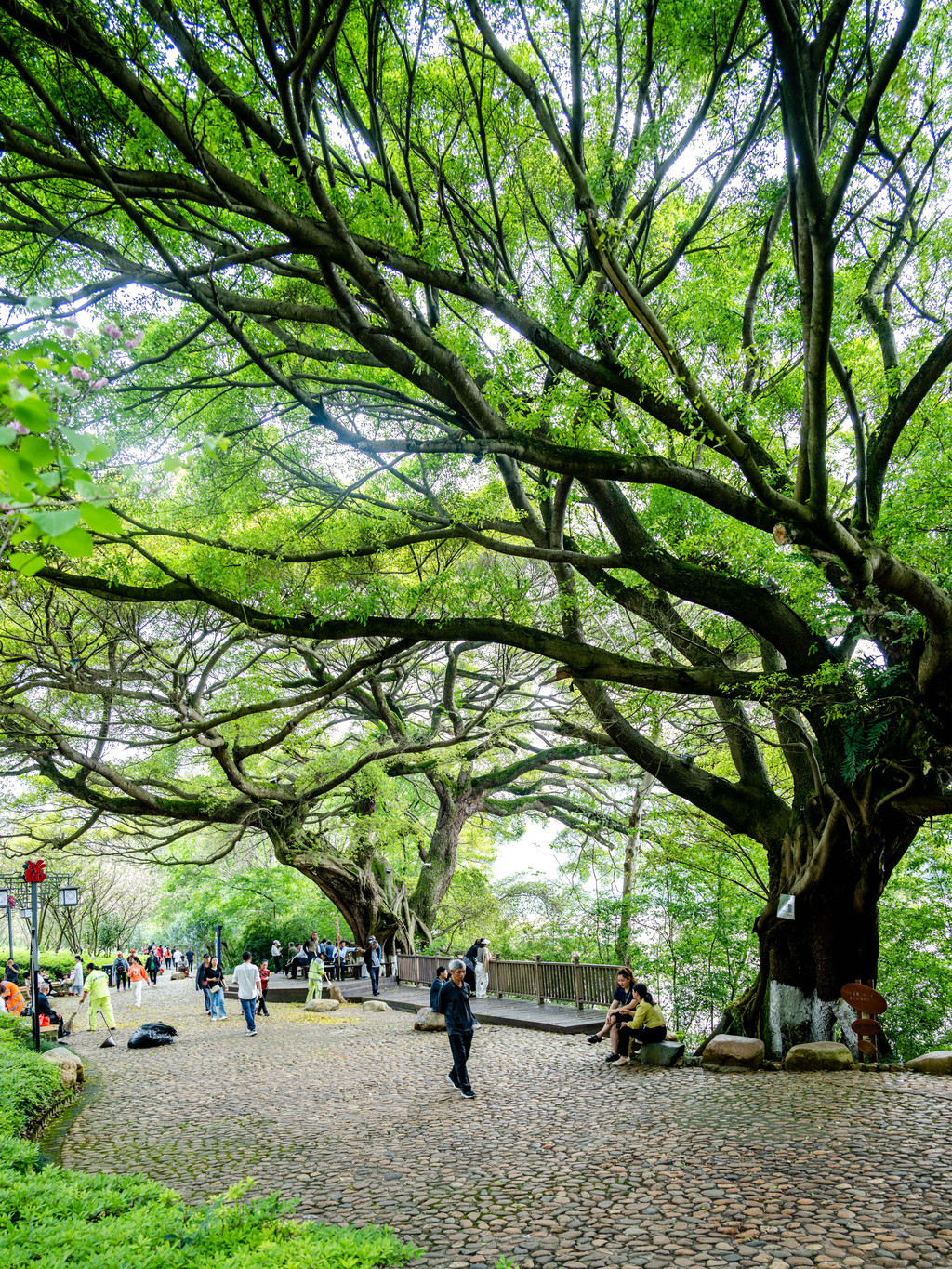 既去到客家文化城,那便绝不能错过它对面的十里樱花长廊和古榕树。贡水之滨,那几万株樱花树如云似霞,连贯成十里长廊,与历经沧桑的古榕树相映成趣。