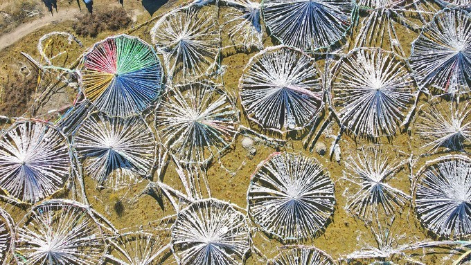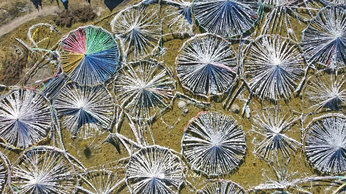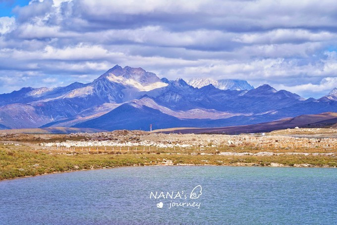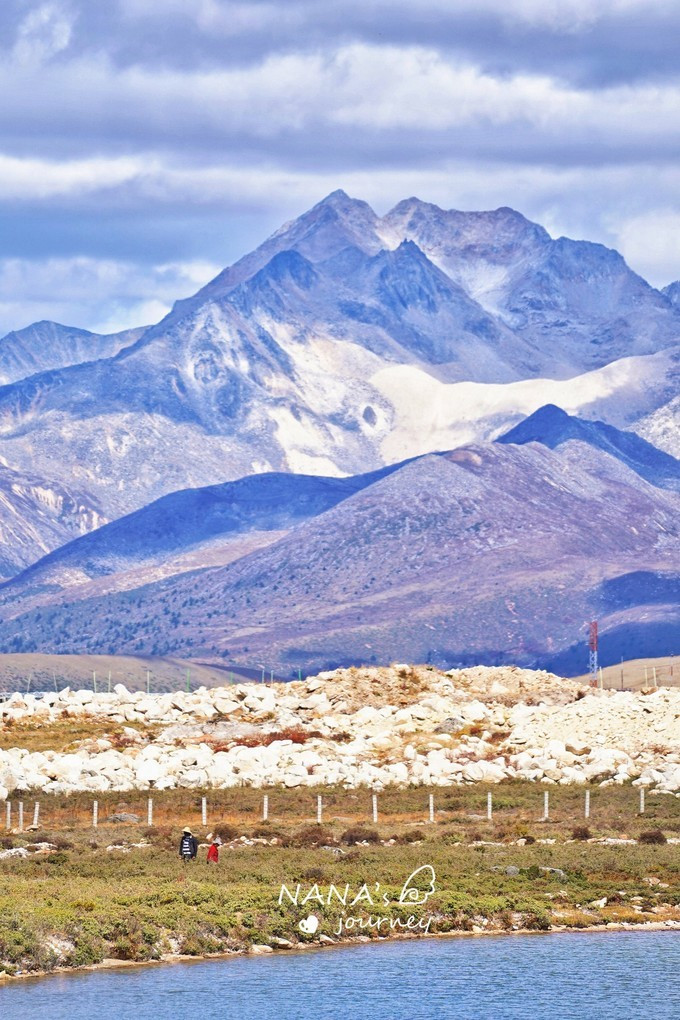 雪山湖泊,中间一片天地有很多忙碌的藏民,后来特地过去问了下才知道他们正在帮助鱼回到湖泊,高原日晒很厉害,水干涸后就会有很多鱼困在泥沙之中,他们会帮助鱼儿们重回斯丁措,真是太暖心的事了。