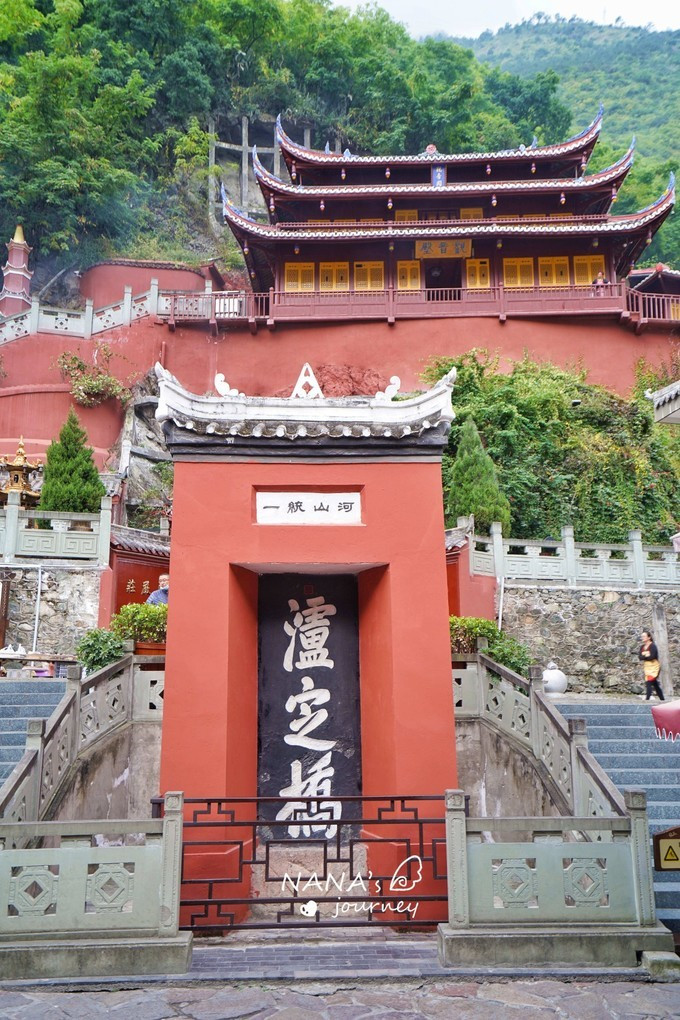 泸定桥位于县城最中心,旁边的观景台能从侧面欣赏到泸定桥的全貌,急流勇进的大渡河水,不断摇晃着的泸定桥,对岸依着山坡而建的庙宇。