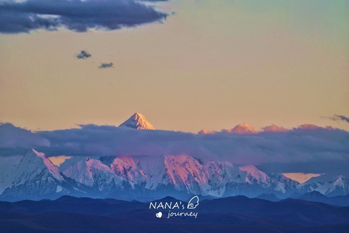 在寒冷中,我架了脚架拍延时,人躲到温暖的车里欣赏日落。贡嘎虽然被云覆盖了上半身,却也小荷露了尖尖角~非常可爱,这可是蜀山之王呀!