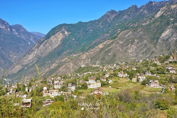 大峡谷两侧的藏寨不在少数,细看每一片区域都可能有村寨的存在,也能感受蜀道难的画面。