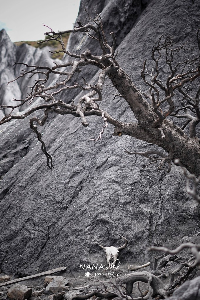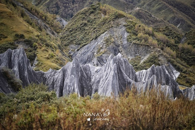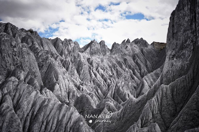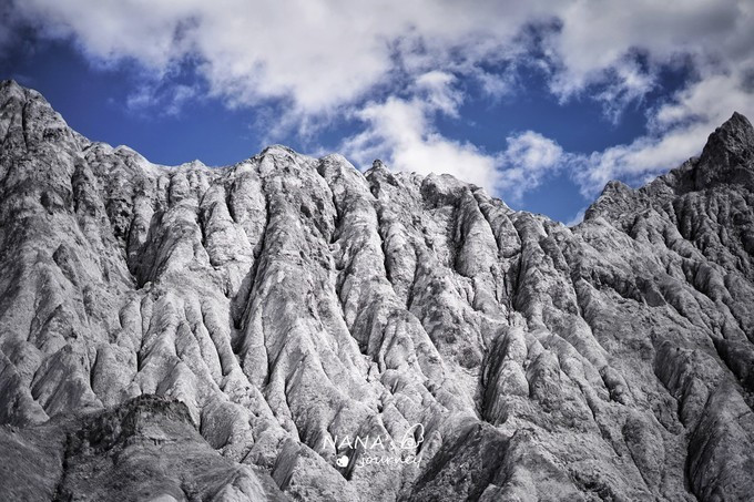 细看这山体的纹路,奇特的色泽和质感,我也早已穿越进入异世界之中。