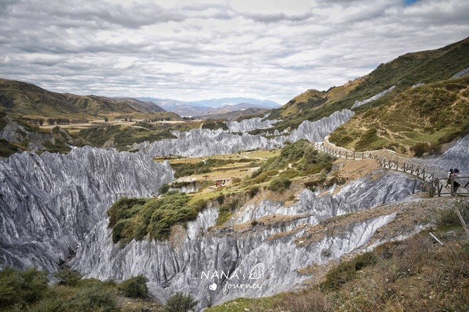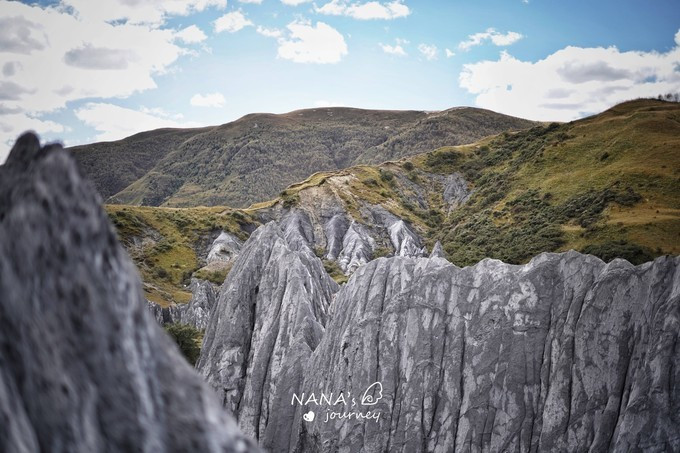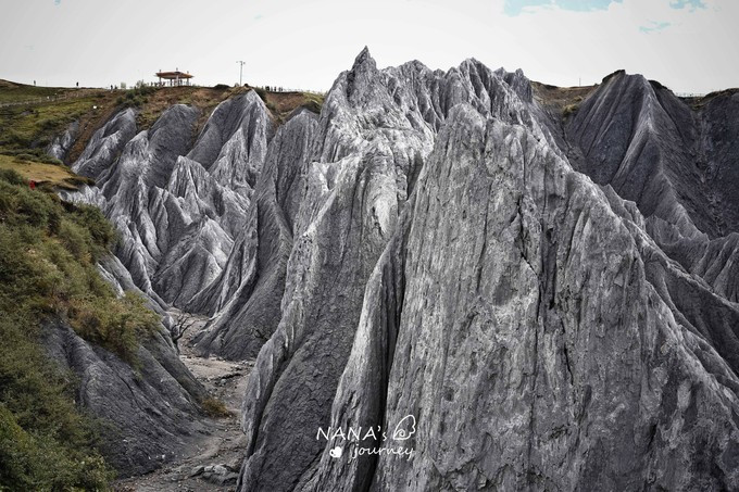 如今的墨石公园,已经有了栈道,人工管理也要求游客必须坐车进入。当进入景区到达第一观景台的时候,一排排灰白色的石头,突兀地生长在绿油油的山坡之间,身边感叹声连连。