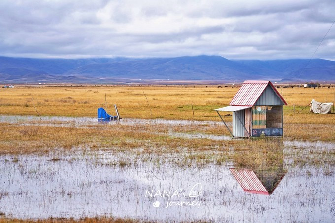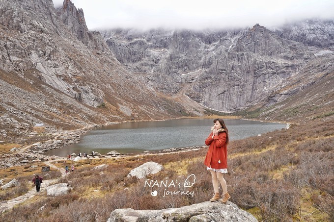 这片湖泊名叫斯丁措,天气晴朗时,可以倒影雅拉雪山和贡嘎雪山,虽然我们出新都桥的时候天晴的一片云都没有,但到了折多山就漫天都是云了。