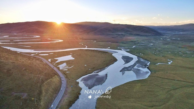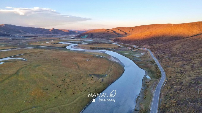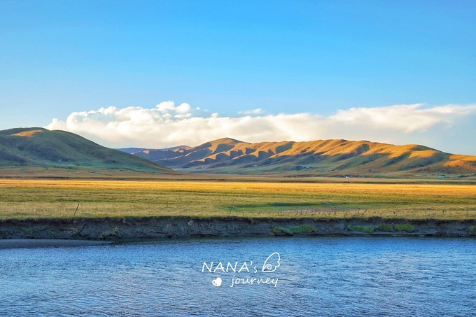 如蓝色丝带般蜿蜒在金色草原上的白河,