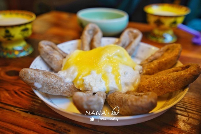 我们只能先吃完饭再想解决办法了,也尝了全程唯一的藏餐,川西的藏餐还是很好吃的,选择基本就是盖被牛肉、酸奶巴科、牛肉包子等,很符合我们的口味。