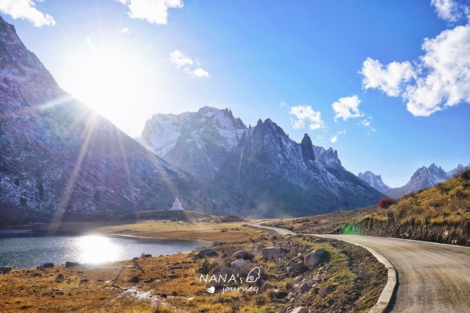 进斯丁措的路是条非常漂亮的s曲线,这里拍公路人像是绝美的,背景是神圣的雅拉雪山,大家前往不要忘记这个拍照点哦~
