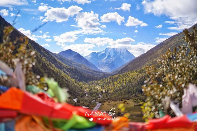 垭口的藏族经幡和雪山,带着川西特有的美景,让我们久久不愿离去。