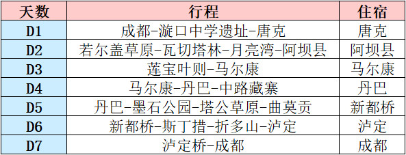 我们这次的行程主要是走 川西 的经典线路,但把北线和常规环线结合在了一起,希望能去到更多种不同风景的地方,从草原到奇石到雪山到民族风情,玩的时间加上行程基本保持在每天8点出发到晚上9点前吃完晚饭,还是比较妥当的。