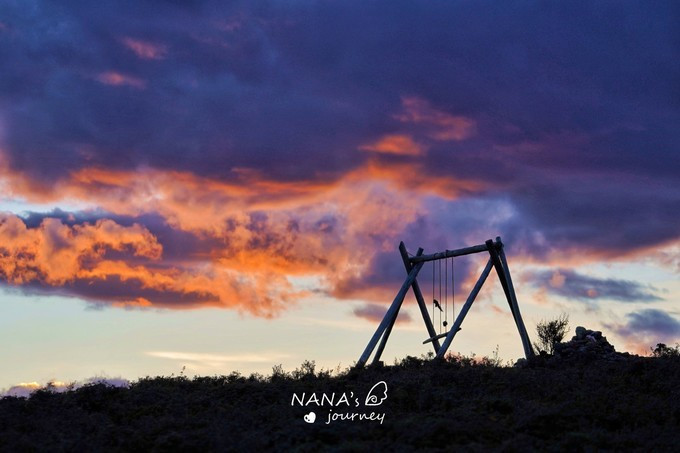另外一个秋千是正对贡嘎的,不过今天拍不到和贡嘎的合影,就看看火烧云下的文艺圣地吧~