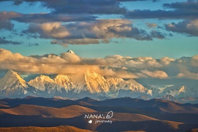 在山头蹲了分钟,始终没有见到贡嘎,像这么多云的天基本也是没此希望了,倒是对面山头,接受阳光的洗礼也是震撼不已~