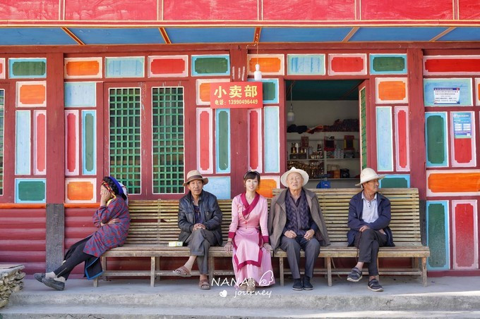 路边的小卖部坐着一群悠闲的藏民,很乐意地和我合照了一张~最左边的那位阿姨穿的就是嘉绒藏族的日常装,最大的不同便是头饰,仿佛帽子一般~但其实男士的服饰又和其他藏族的服饰一样了,有机会我也想深入了解一下~