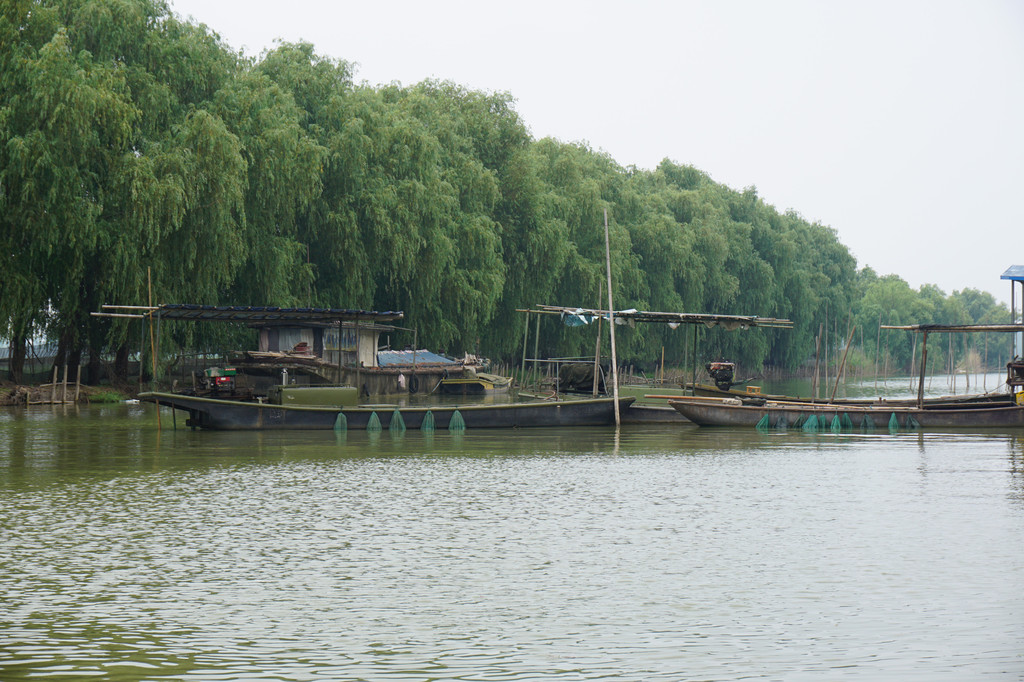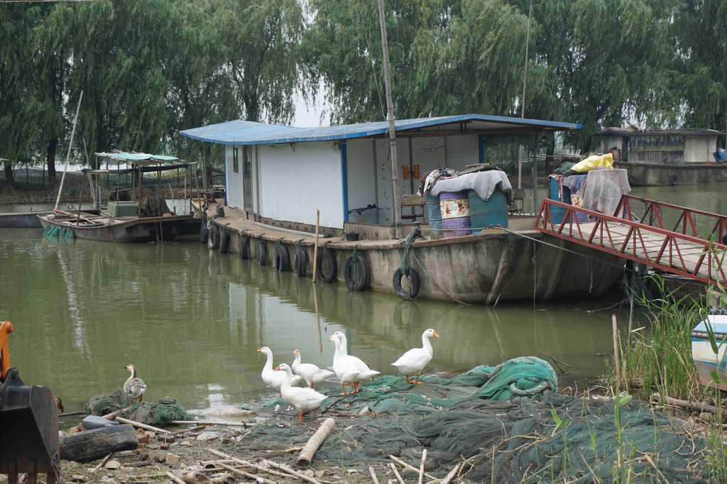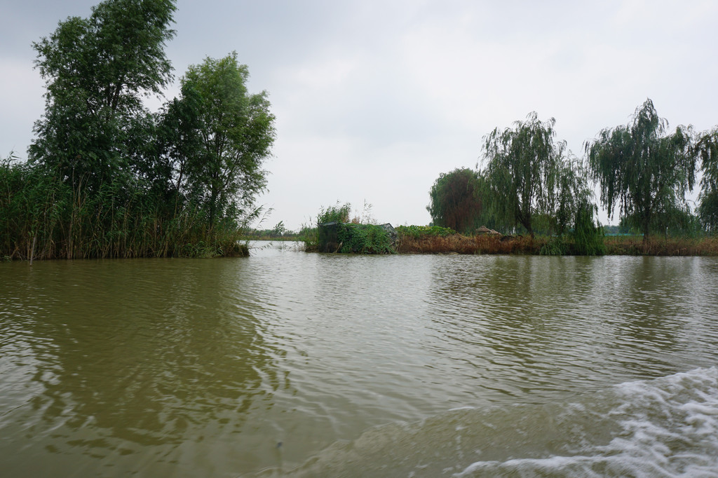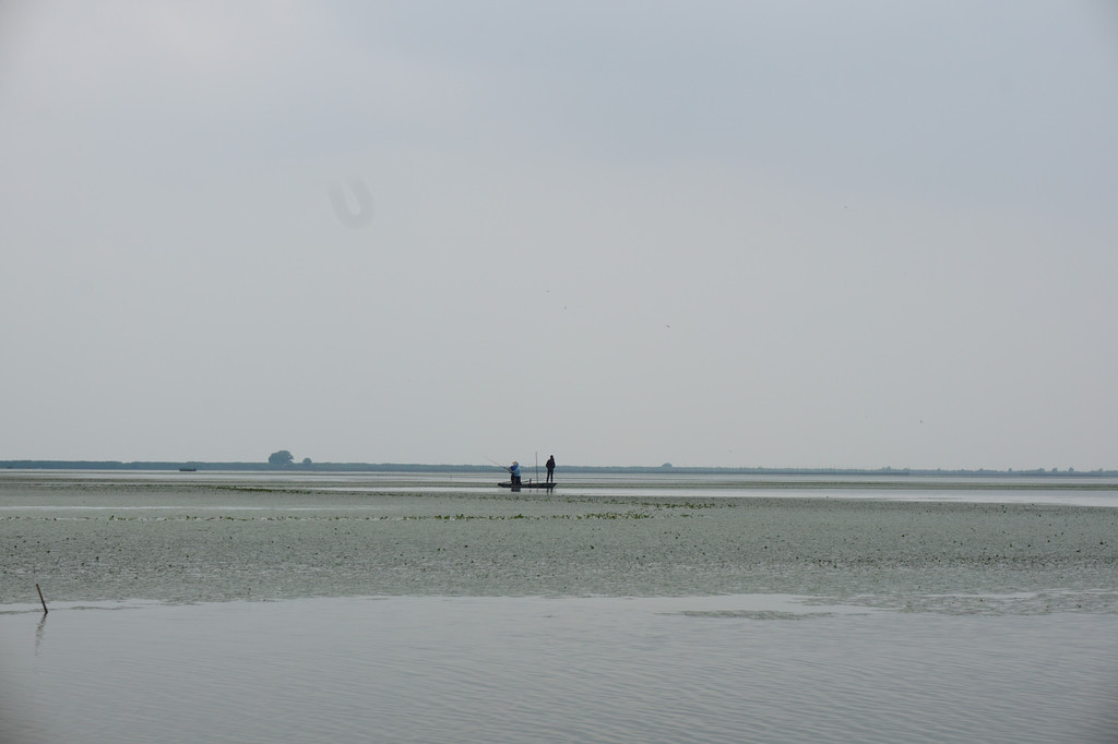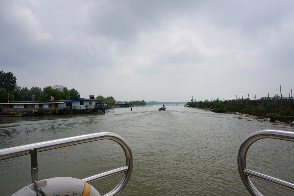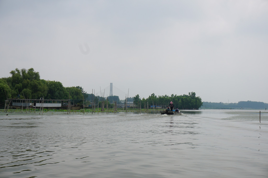 登上一艘能坐二十几位客人的渡船我们进入高邮湖。船票是60位/人往返。