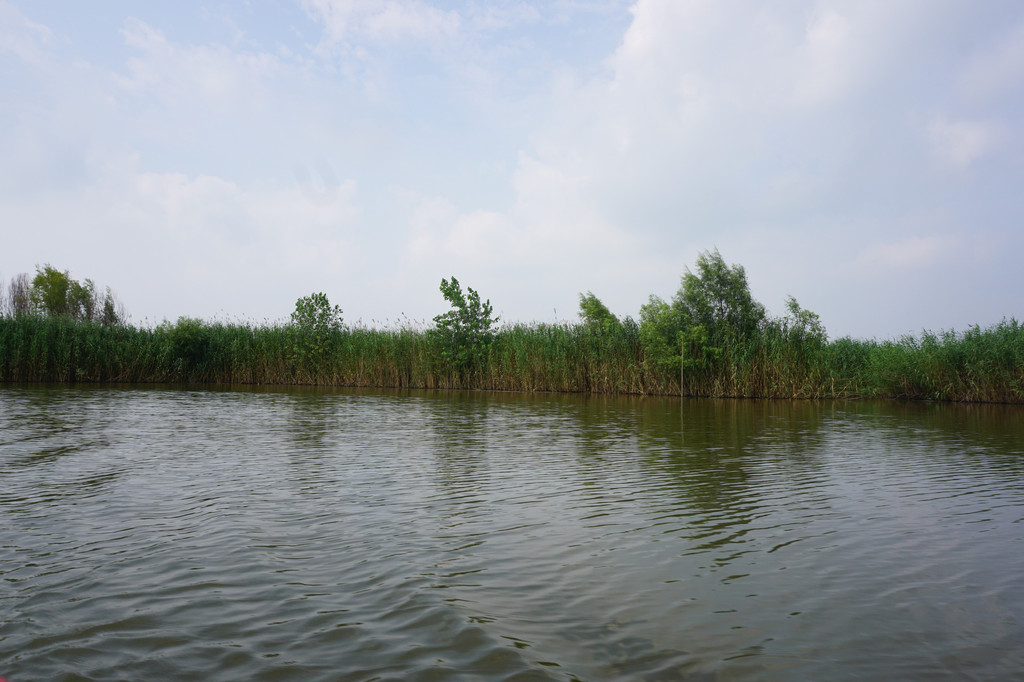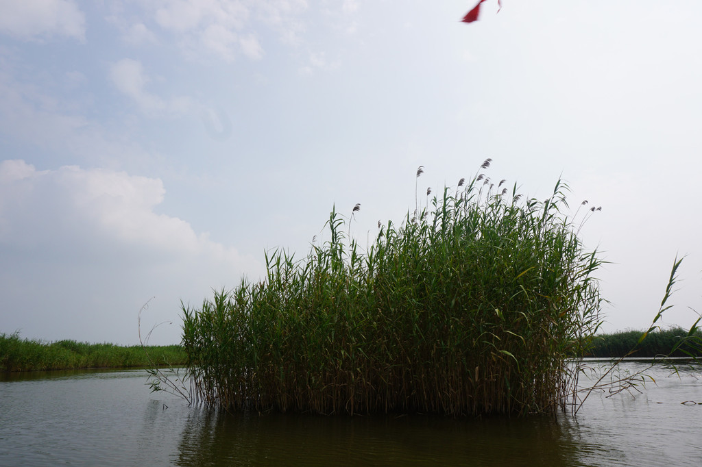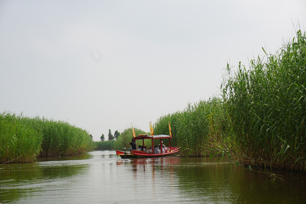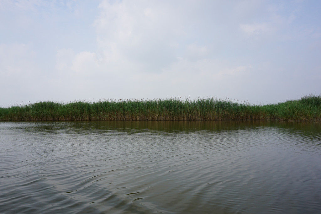 五万亩的生态芦苇荡身处浩渺的高邮湖一角。广阔的湖泊,茂密的芦苇,狭长,幽深,曲折的多形态的水上芦苇空间。