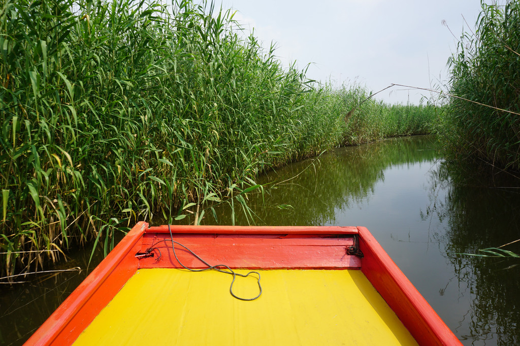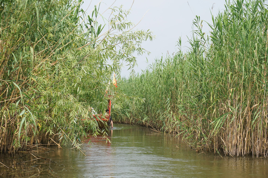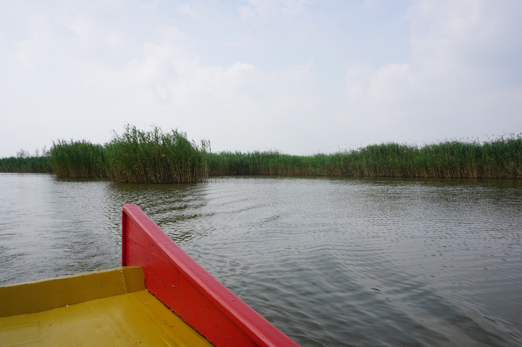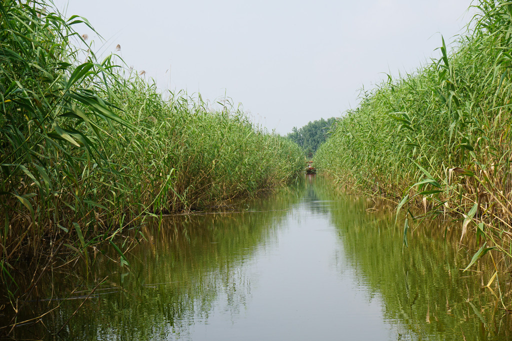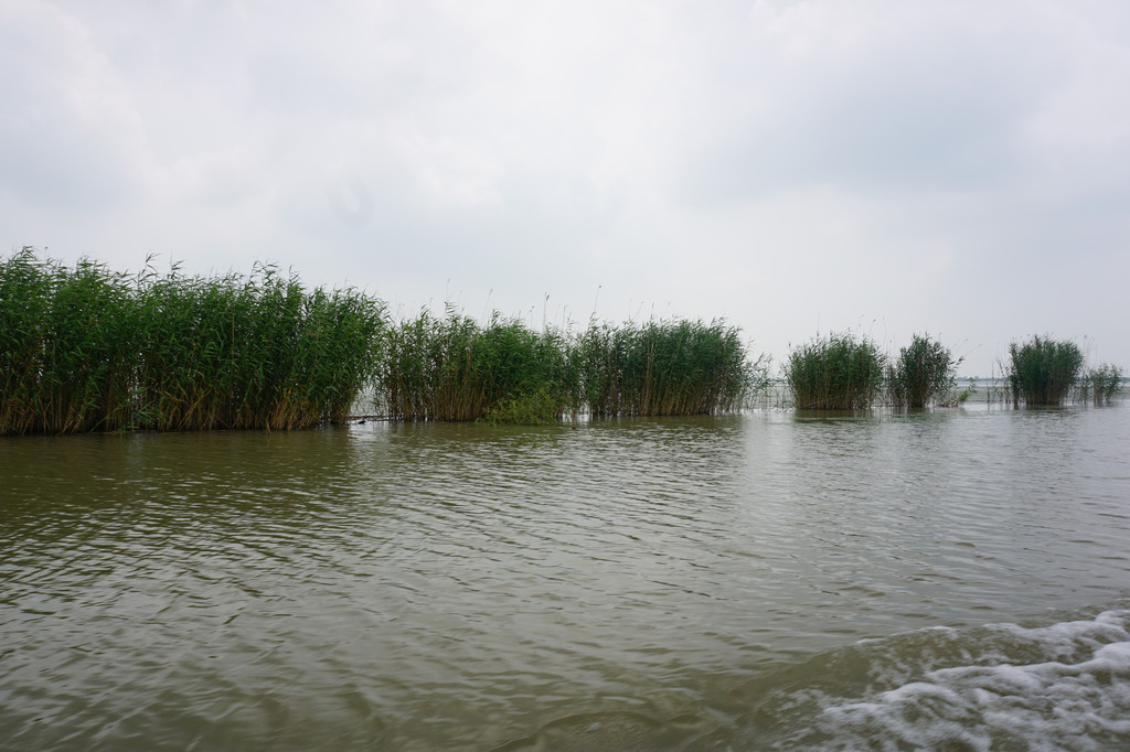 五万亩的生态芦苇荡身处浩渺的高邮湖一角。广阔的湖泊,茂密的芦苇,狭长,幽深,曲折的多形态的水上芦苇空间。