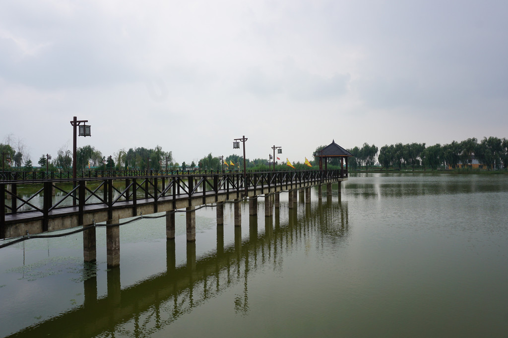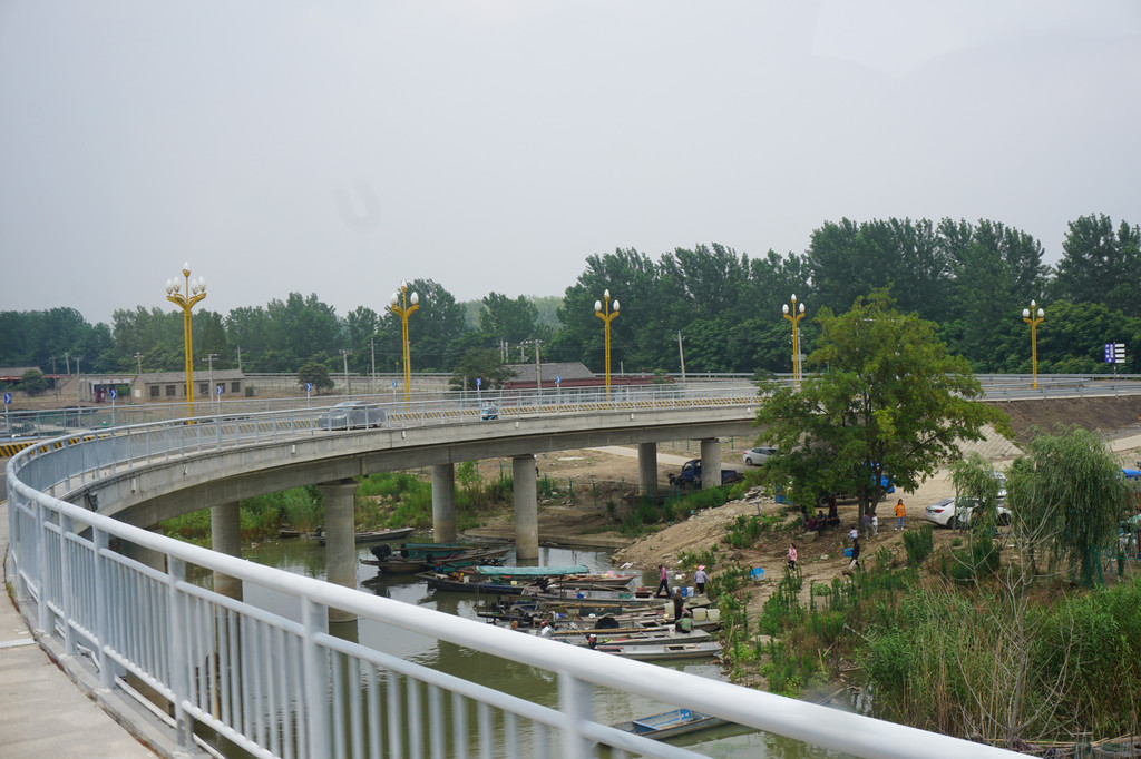 从运河的东面跨过运河来到运河西侧,回望大桥。因为有了这座桥湖区与古镇界首连为一体。沿着堤坝路伴高邮湖而行。