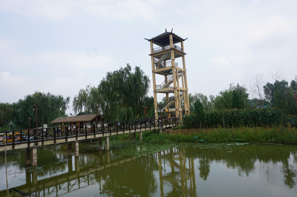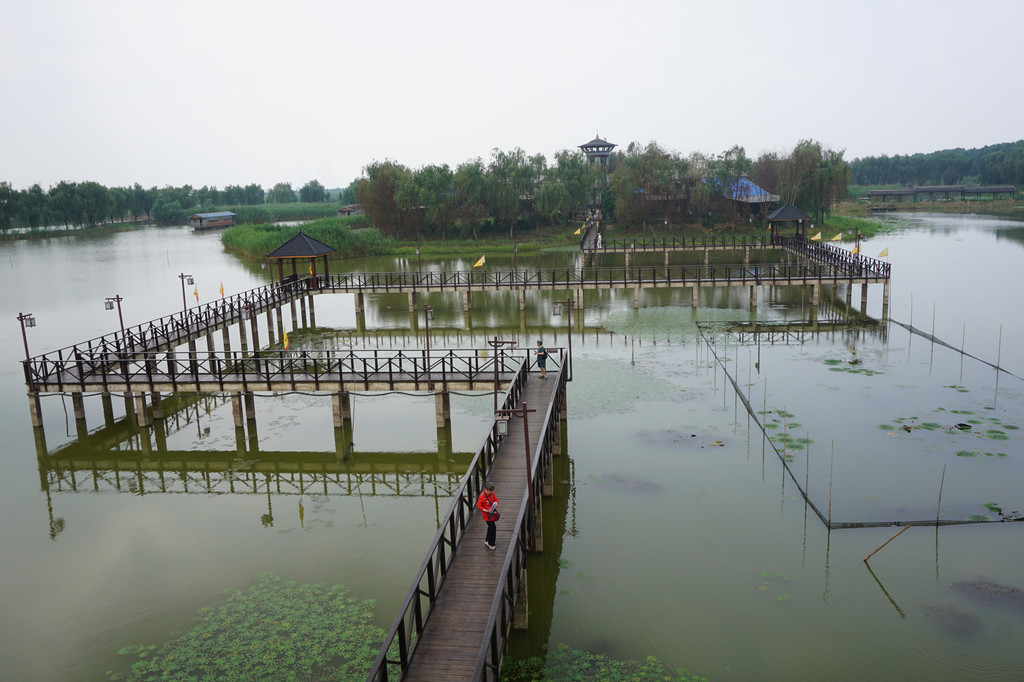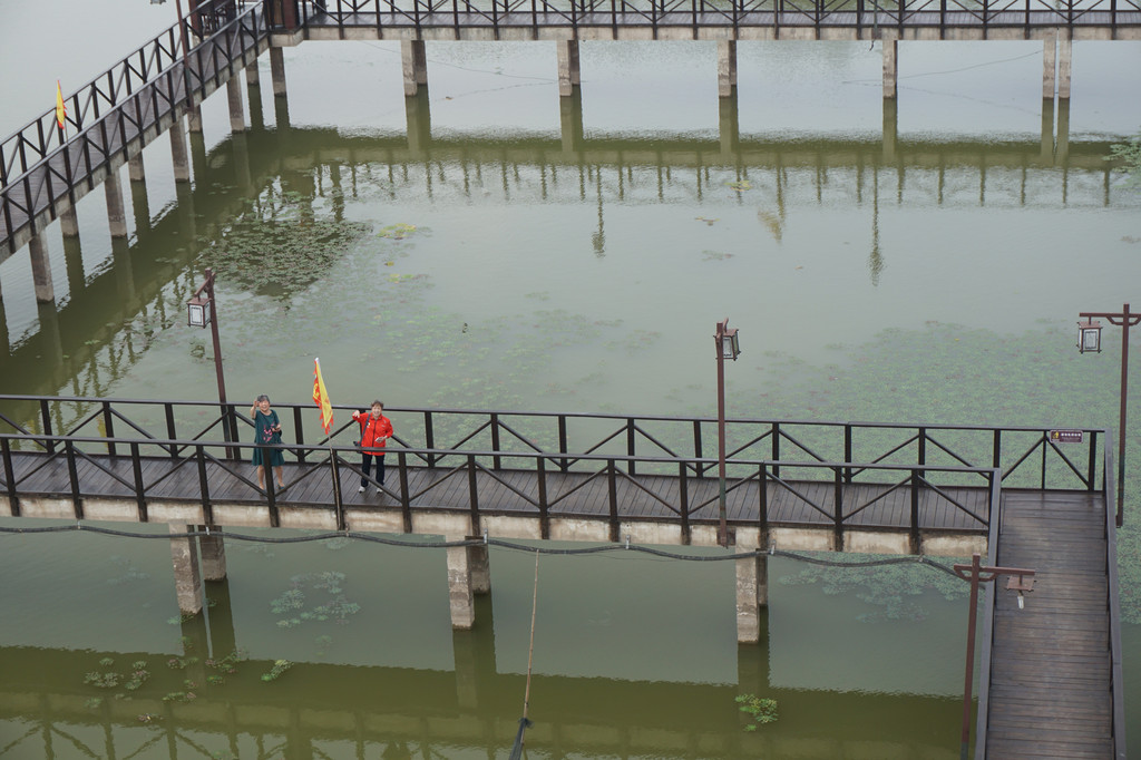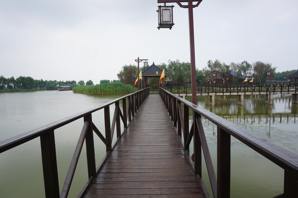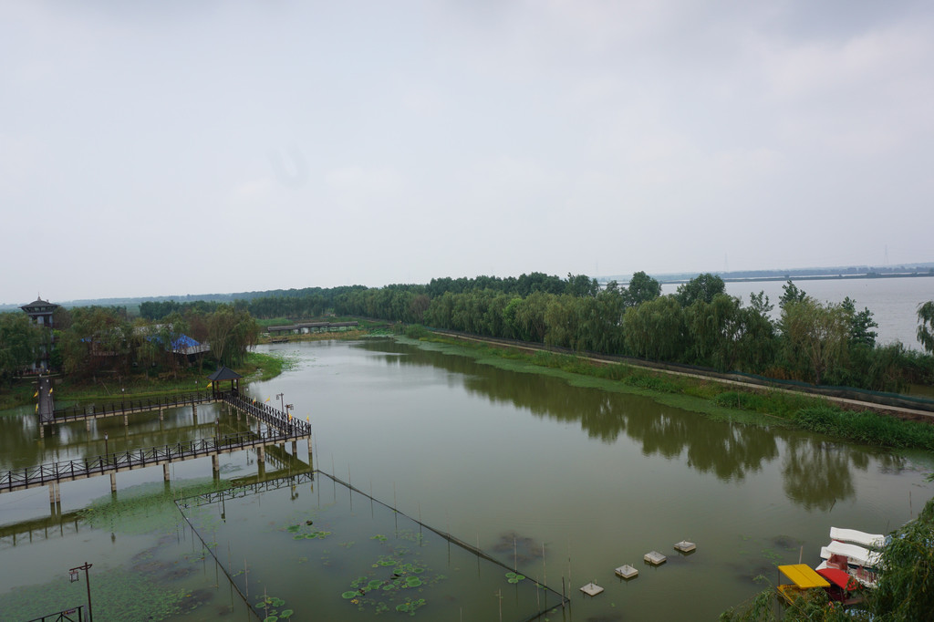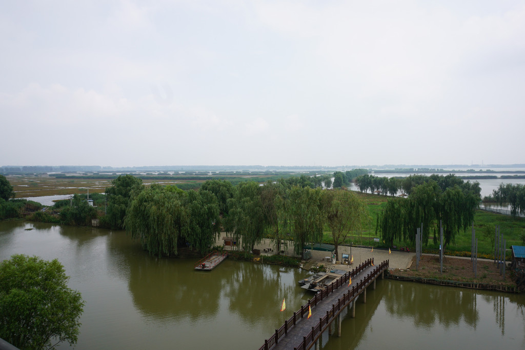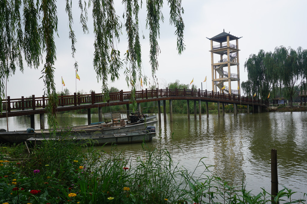 多了一些繁花似锦的点缀。想想第一次来高邮,在界首这个质朴,原滋原味的古镇我细细走细细看,很是喜欢。离开界首,我只是随意的开到堤坝上观观高邮湖,偶遇了这个景点。那会这里正在修停车场,景区也需要买票进入。因为时间不允许,我就没有进入景区。而是直接驾车行驶在高邮湖与京杭大运河之间的大运河西堤,开着车欣赏高邮湖的风景。没想到,今天与这里再续前缘。